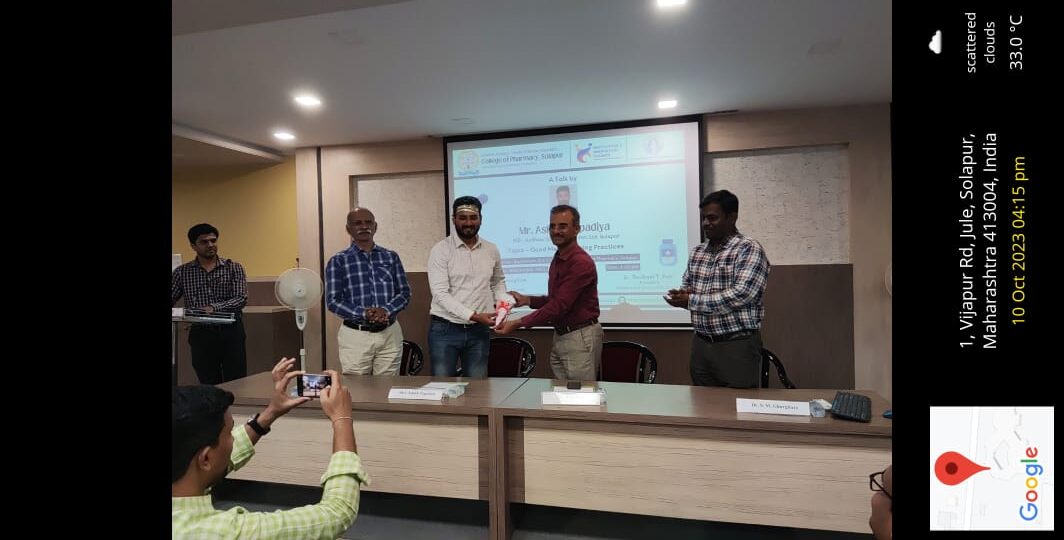 Guest Lecture on “Career Opportunities in Clinical Research” by Mr. Naved Mujawar, Study Deliver Specialist, Bengaluru on 06.10.2023