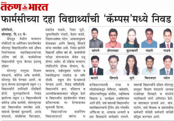 Mylan Campus Selection - Tarun Bharat (12.05.2018)