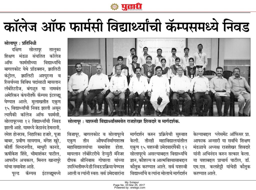 Mylan Campus Selection - Pudhari (25.03.2017)